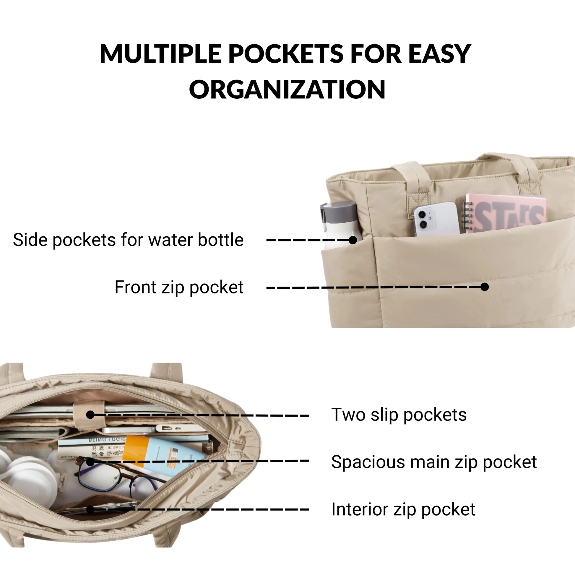 Unlike cheap Amazon knockoffs, Cloudy is made with premium water-resistant nylon, features a padded 15.6" laptop compartment, multiple organizer pockets, and a lightweight puffer design that combines practicality with style — no shortcuts.