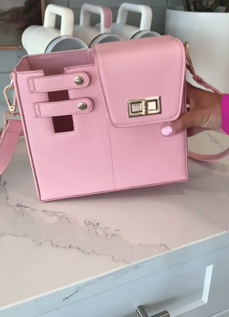This bag was thoughtfully designed to keep a water bottle or cup upright, making it easy to shop, stroll, or go about the day hands-free while staying hydrated.