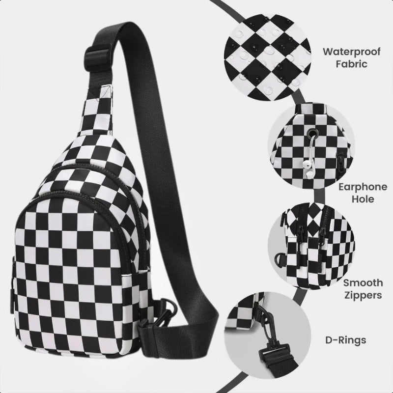 Stand out with the Checkered Crossbody—bold, practical, and lightweight. Its playful checker design makes it a statement piece while keeping your essentials close and secure. Perfect for daily wear, concerts, or city outings.